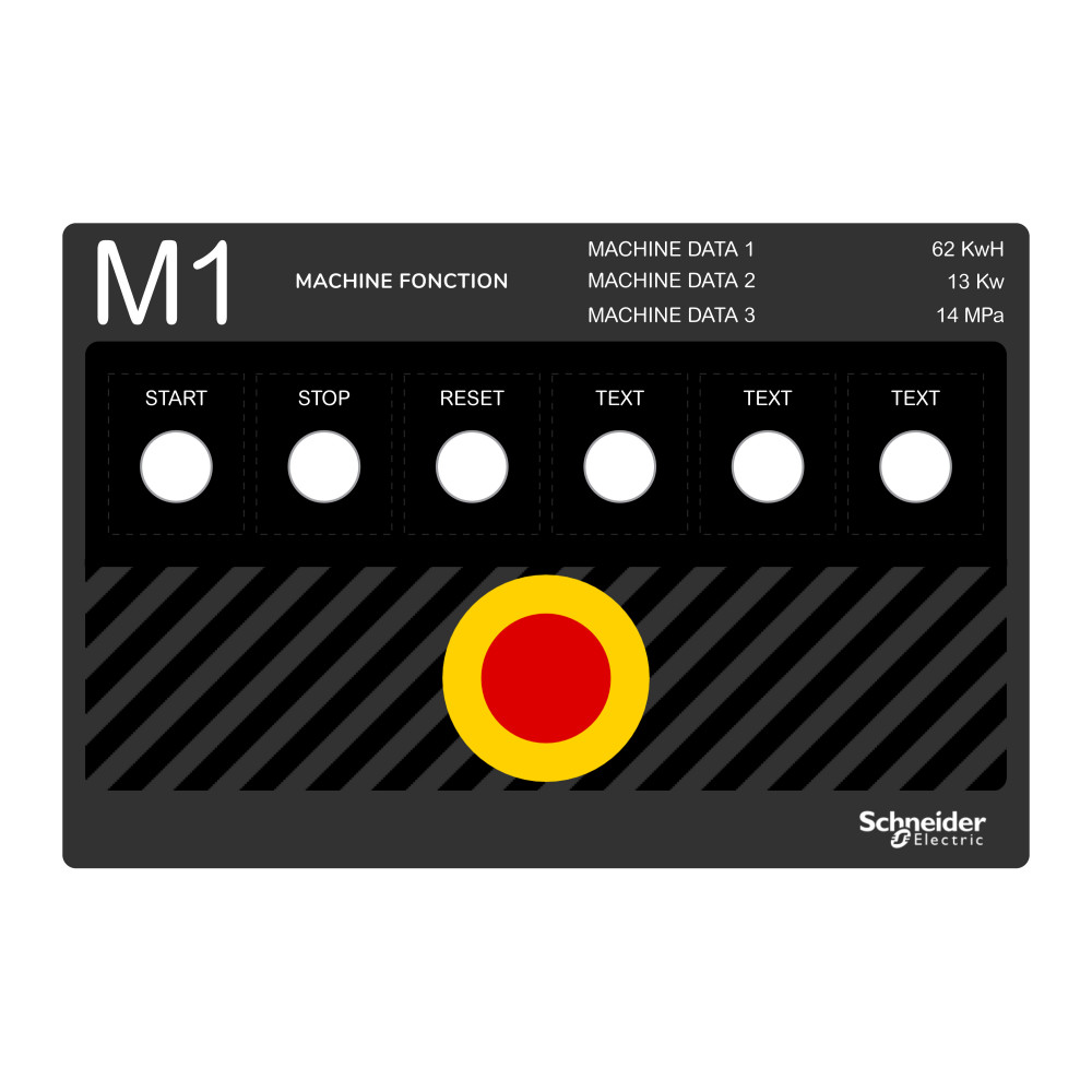Эта этикетка позволяет посредством маркировки адаптировать щит управления согласно предпочтениям заказчика в соответствии с применяемым оборудованием и операциями.
